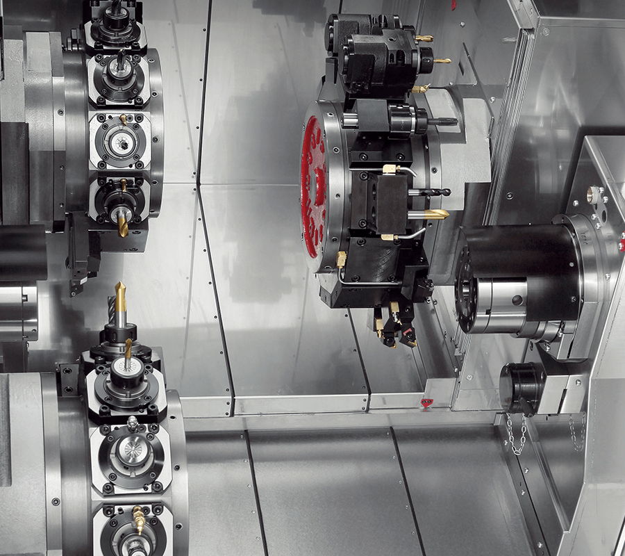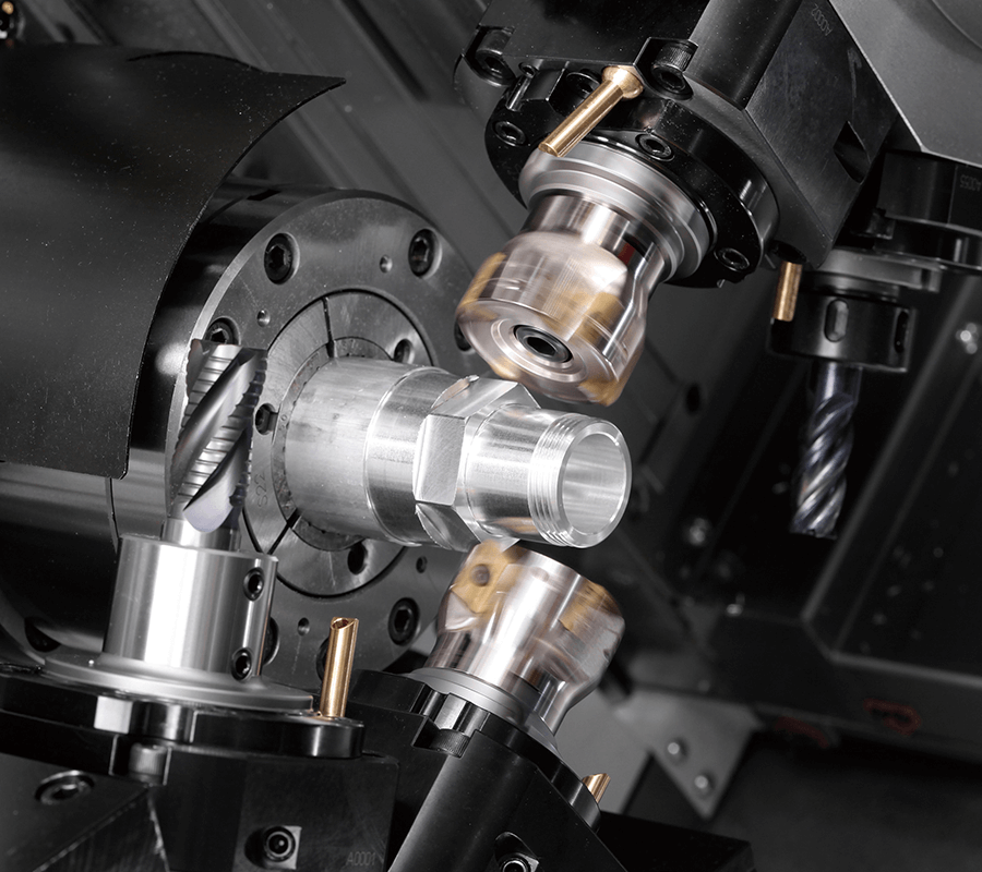 利(lì)用搭載(zǎi)Y軸功能(néng)的上下(xia)刀塔和(hé)左右軸(zhou)的同步(bù)加工,可(ke)短時間(jian)🏃♂️完成工(gong)件的内(nei)外加工(gōng)